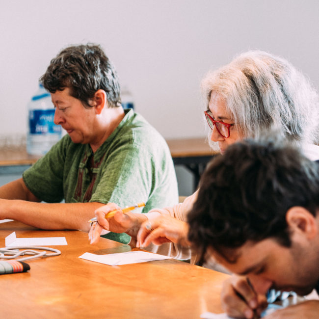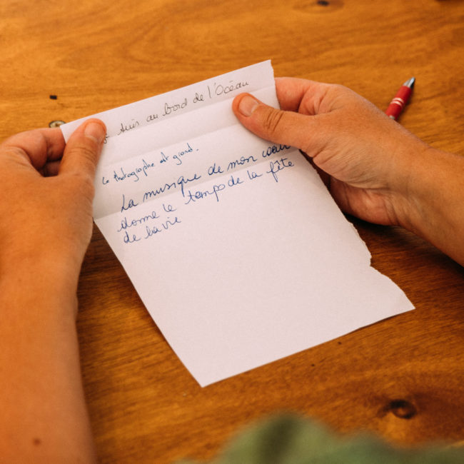 Lors de deux ateliers menés durant le 27ème Festival, Étienne Russias a mené des expérimentations poétiques avec les participant·e·s, en les invitant dans la rédaction de textes portant sur la question de la fête. Des petites formes poétiques ont été réalisées de manière collective, surprenante et amusante, et créant ainsi la littérature du festival, à découvrir ici :