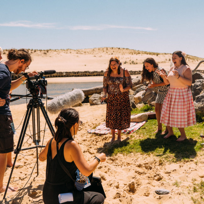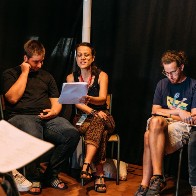 – Le second groupe a combiné des jeunes des deux départements (quatre lycéens de Libourne en option cinéma et cinq jeunes de Mont-de-Marsan) autour de la réalisation d’une fiction inspirée par la thématique du Festival : « Peut-on encore faire la fête ? ». Une partie des participants sont des jeunes en grande difficulté sociale et professionnelle, sans emploi, ni formation, ni étude. L’un des objectifs sous-jacent de ce second groupe fut de réunir des jeunes d’horizons différents autour d’un objectif de création commune, de créer une synergie de groupe et de décloisonner les secteurs sociaux.