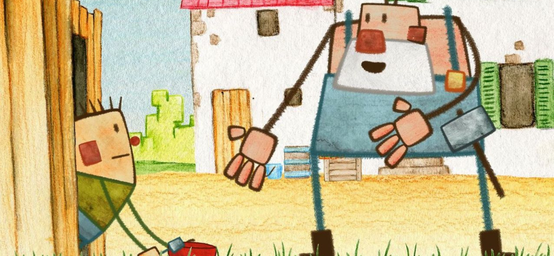 Papy met le dernier clou à une jolie petite cabane qu’il offre fièrement à son petit-fils. Mais le P’tiot la trouve un peu petite, et puis… il y a un ver dans la cabane ! « Va donc chercher le poussin, lui propose le malicieux Papy, il s’en occupera ! »