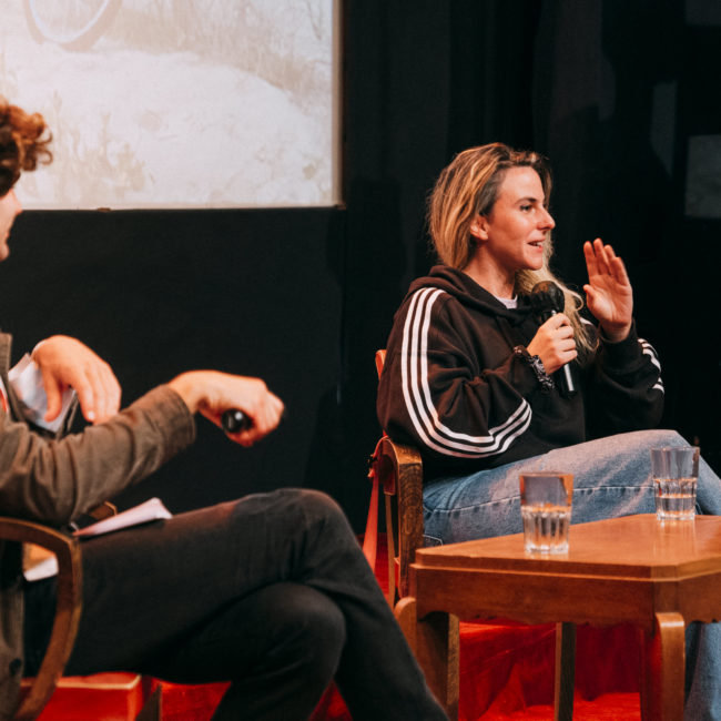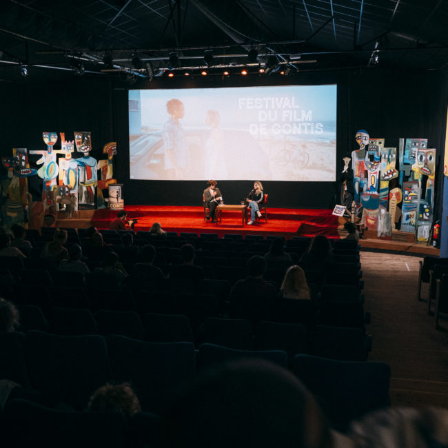 La rencontre fut précédée par la projection de son court-métrage Iemanja – Cœur océan (2017) et de son premier long-métrage De l’or pour les chiens (2021), deux œuvres liées par une même exigence de mise de scène, un regard bienveillant et sans fard sur la jeunesse contemporaine, donnant le premier rôle à des personnages dont la fragilité et la force nous bouleversent. A notre plus grand plaisir, ce sont aussi deux œuvres tournées sur le territoire landais et plus particulièrement à Contis. Sorti en juin, le long-métrage nous a fait l’honneur d‘être le visuel de ce 26e festival !